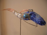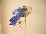Sculptuur gemaakt uit diverse materialen: blauwe en witte kunststof, koper, glas, lood en tin.