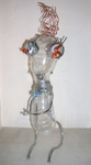 Dit klein beeldje is gemaakt van kunststof, glas, tin en lood.