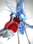 Sculptuur gemaakt uit kunststof, lood, glas en tin.
